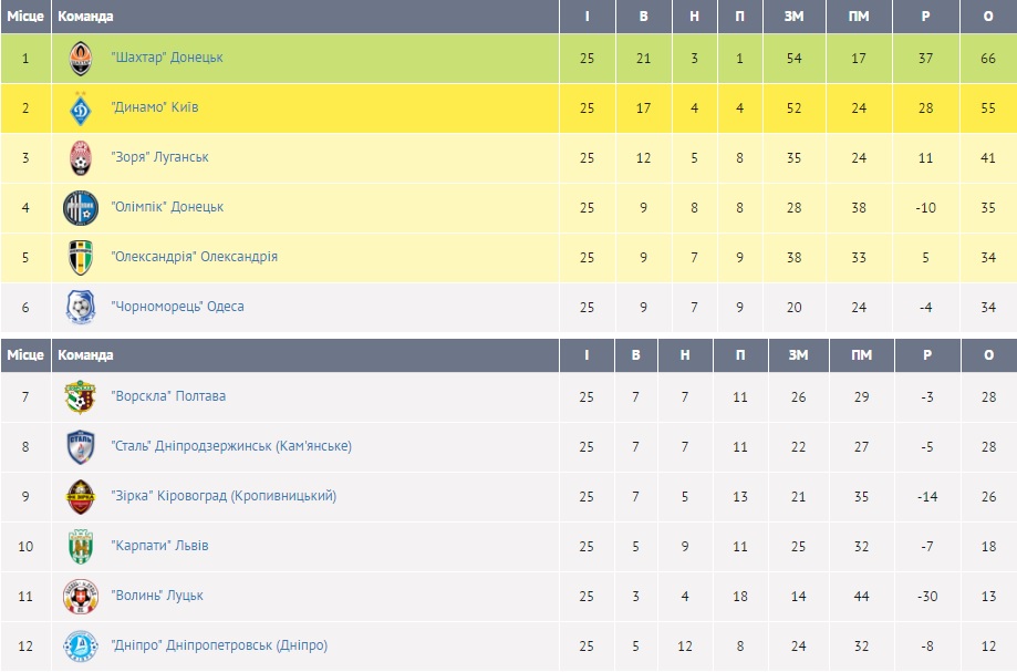 "Динамо" обіграло "Зорю" і збільшило відрив від луганчан до 14 очок. "Шахтар", у свою чергу, розгромив "Олімпік" і не дозволив киянам скоротити відставання, яке складає 11 пунктів. "Волинь" перервала серію з 12 матчів без перемог і покинула останню сходинку чемпіонату, на якій тепер знаходиться "Дніпро".