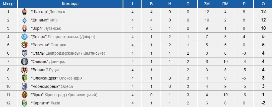 12-14 серпня відбулися матчі четвертого туру української Прем'єр-ліги. За їх підсумками "Динамо", "Шахтар" і "Зоря" зміцнили свої лідируючі позиції в чемпіонаті.
