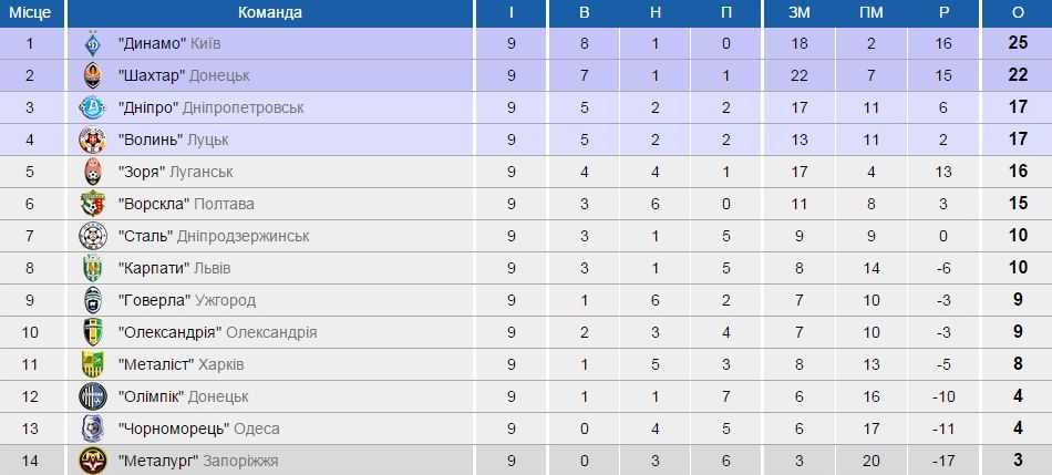 У неділю запорізький "Металург" і "Чорноморець" продовжили свої серії без перемог, а "Зоря" не зуміла втриматися на третій сходинці, зігравши внічию з "Олександрією". Змістив луганчан звідти "Дніпро", який обіграв "Металіст". Західноукраїнське дербі завершилося на користь "Волині". Підопічні Віталія Кварцяного набрали після дев'яти турів стільки ж очок, скільки і команда Мирона Маркевича.
