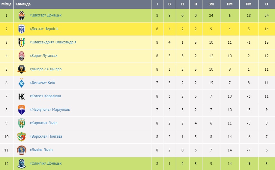 Завершився восьмий тур нового сезону української Прем'єр-ліги. Команди зіграли шість поєдинків. Всього було забито 11 голів.