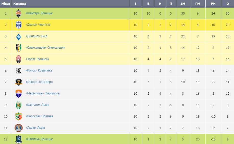 Завершився десятий тур нового сезону української Прем'єр-ліги. Команди зіграли шість поєдинків. Всього було забито 12 голів.