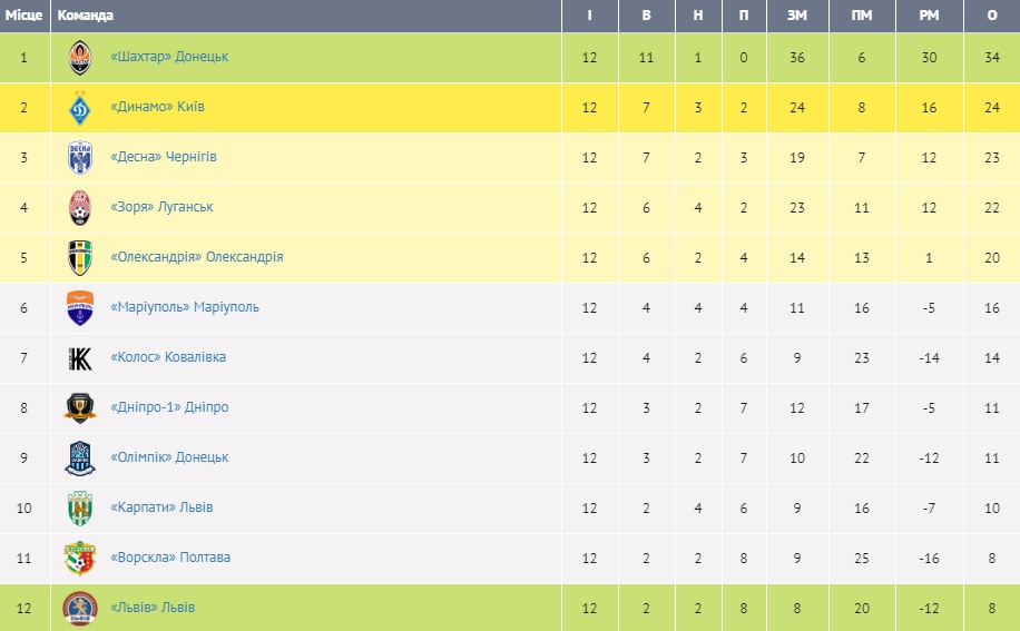 Завершився 12-й тур поточного сезону української Прем'єр-ліги. Команди зіграли шість поєдинків. Всього було забито 18 голів.