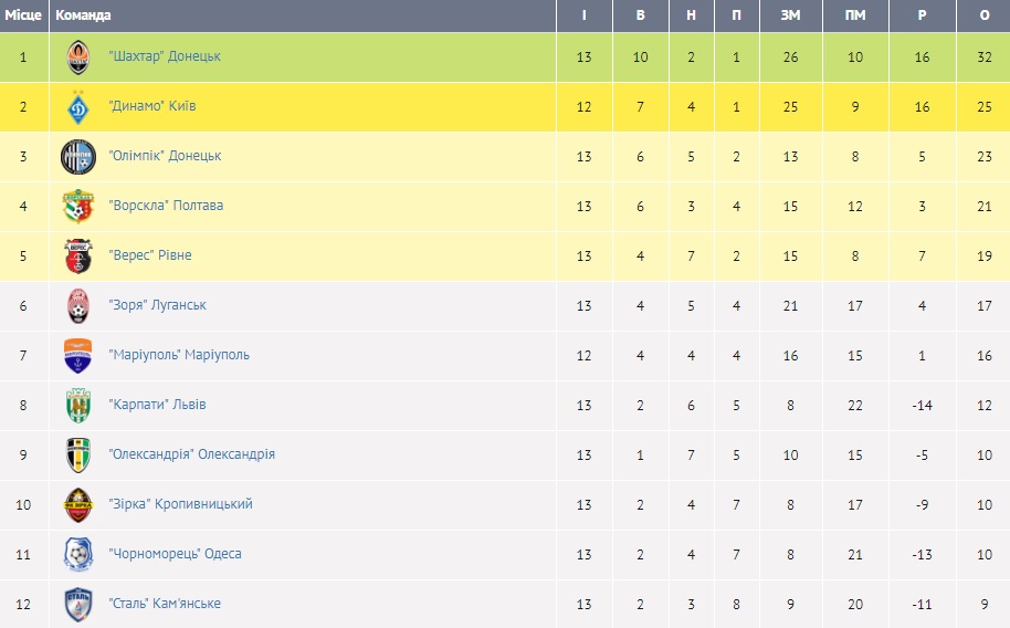 У рамках 13-го туру української Прем'єр-ліги традиційно було зіграно шість матчів. Команди забили 13 голів.