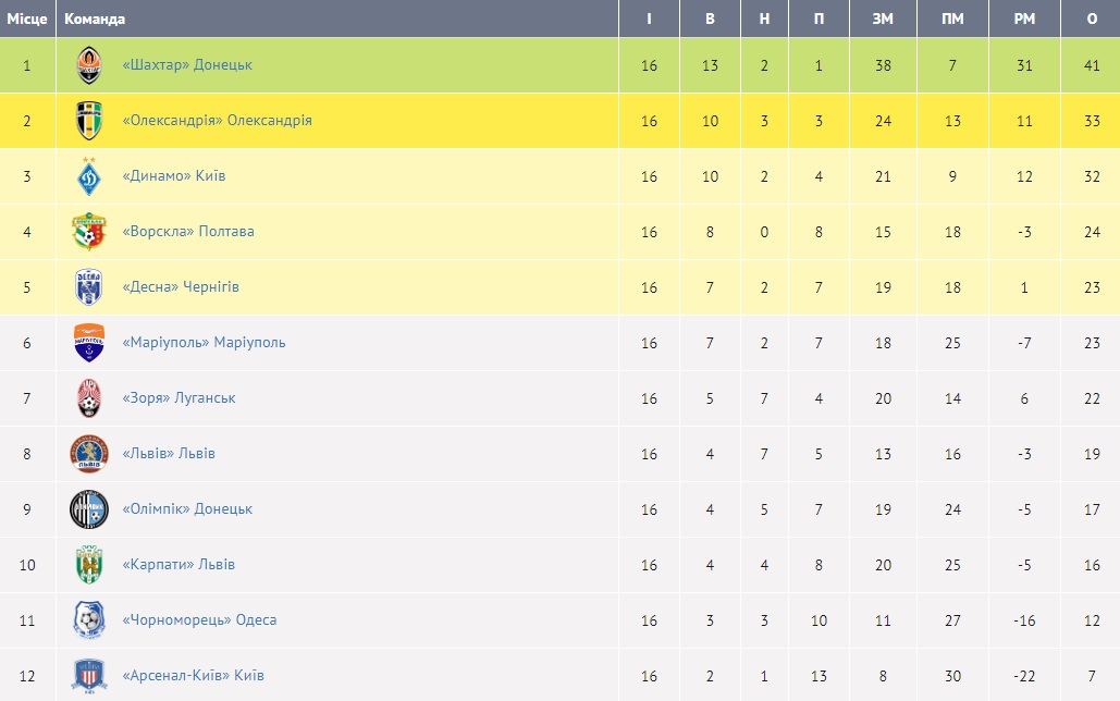 У рамках 16-го туру української Прем'єр-ліги традиційно було зіграно шість матчів. Команди забили 11 голів.