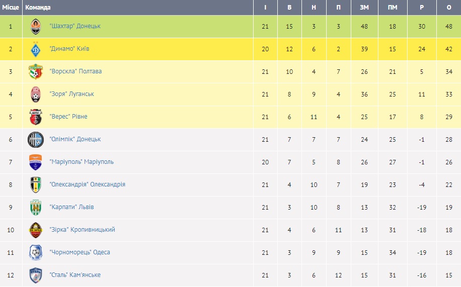 В рамках 21-го туру української Прем'єр-ліги було традиційно зіграно шість матчів. Команди в цьому турі забили 15 голів.