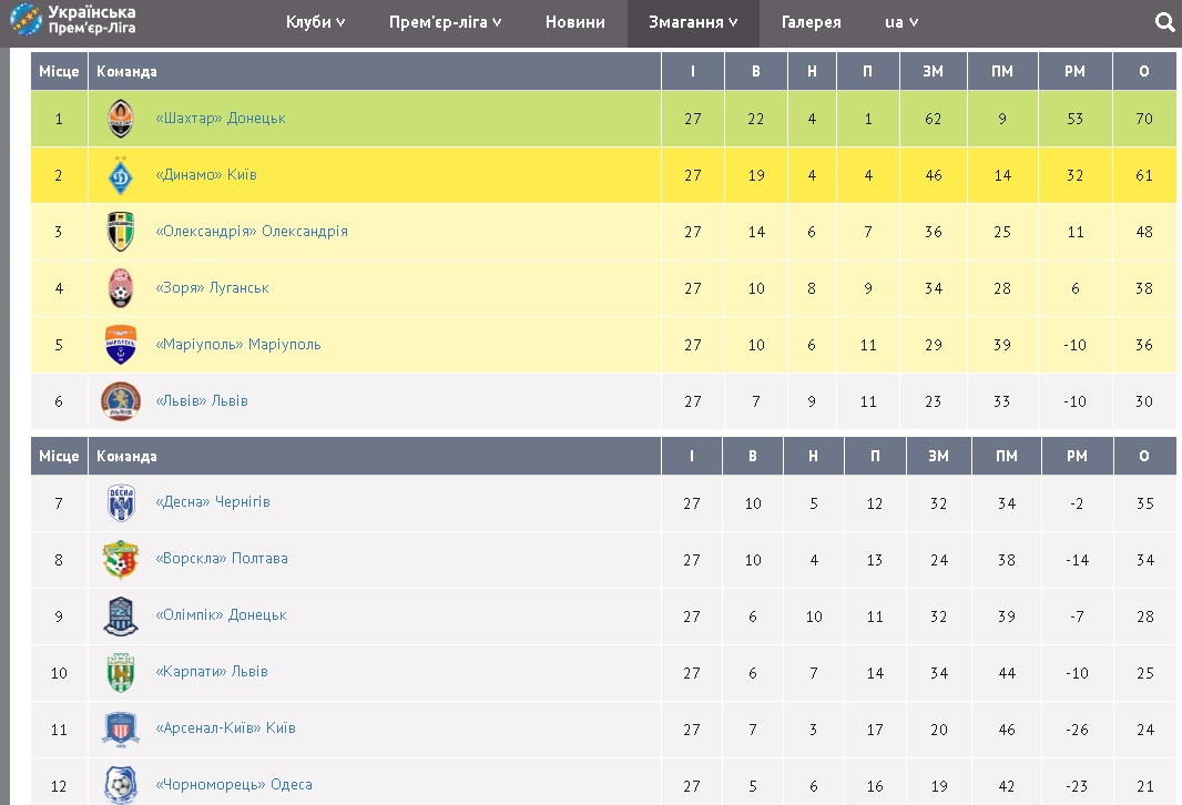 Підійшов до кінця 27-й тур української Прем'єр-ліги. Команди в рамках туру традиційно зіграли шість поєдинків. Усього було забито 19 голів. "Шахтар" за підсумками туру збільшив відрив від "Динамо" до дев'яти очок.