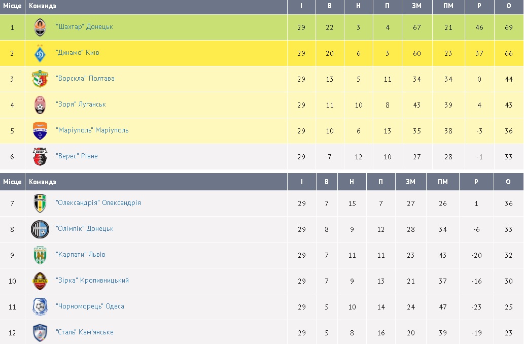 Таким чином, після 29-и турів УПЛ "Динамо" продовжує переслідувати "Шахтар", який випереджає киян на три набраних пункти.