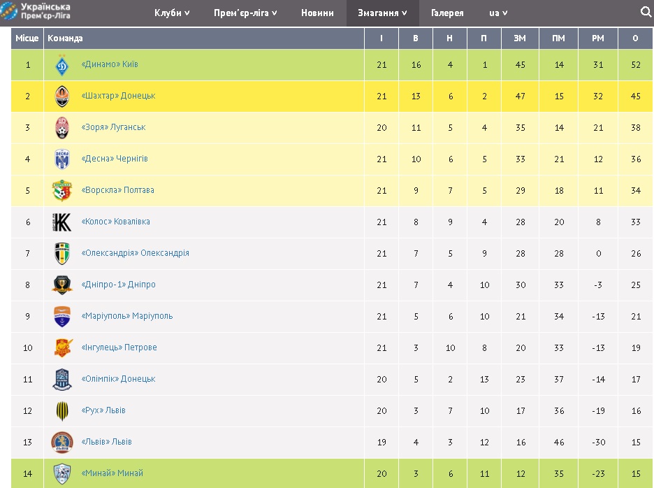 Турнірна таблиця
