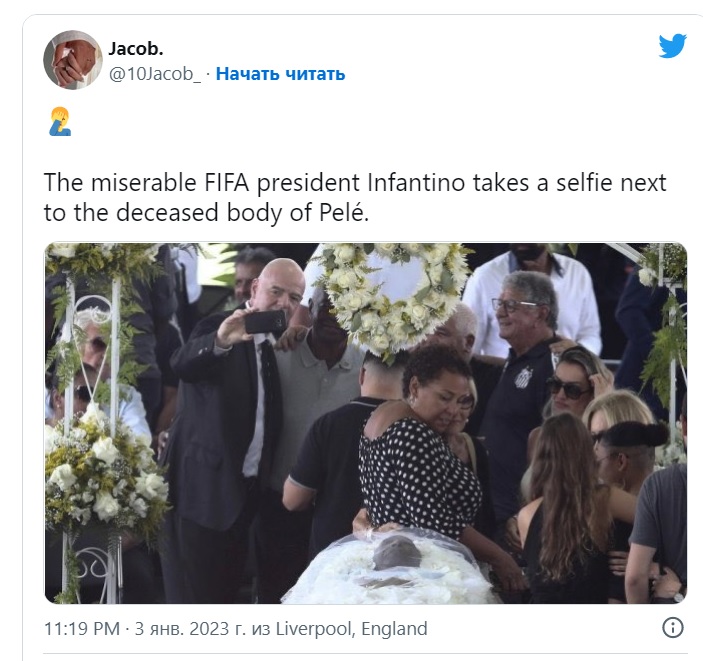 Президент Міжнародної федерації футболу (ФІФА) Джанні Інфантіно потрапив у скандал через селфі поруч із труною померлого легендарного футболіста Пеле.