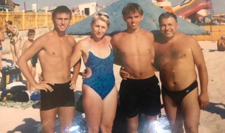 (Олександр Караваєв з батьками та братом)