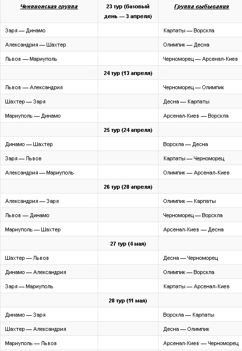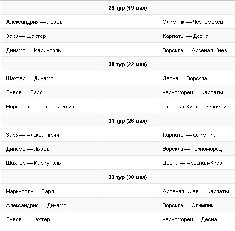 Що стосується очних зустрічей, то "Динамо" і "Шахтар" перший свій поєдинок проведуть 24 квітня в рамках 25-го туру в Києві, потім 22 травня в рамках 30-го туру в Харкові.