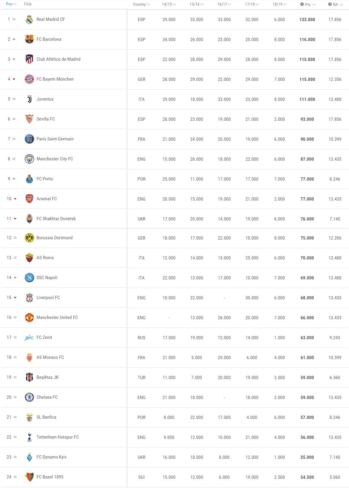 "Динамо" залишилося в рейтингу на 23-му місці, не зумівши переграти "Яблонець" (2:2) в Лізі Європи. Лише 0,5 бала відділяють від киян "Базель", на 2 бали менше у "Шальке" і "Вільярреала". На 1 бал "Динамо" відстає від "Тоттенхема".