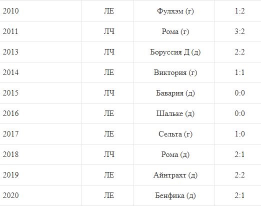 У 2010-му році "гірники" програли англійському "Фулхему" (1:2) в розіграші Ліги Європи, з тих пір кожен рік були лише перемоги або нічиї.