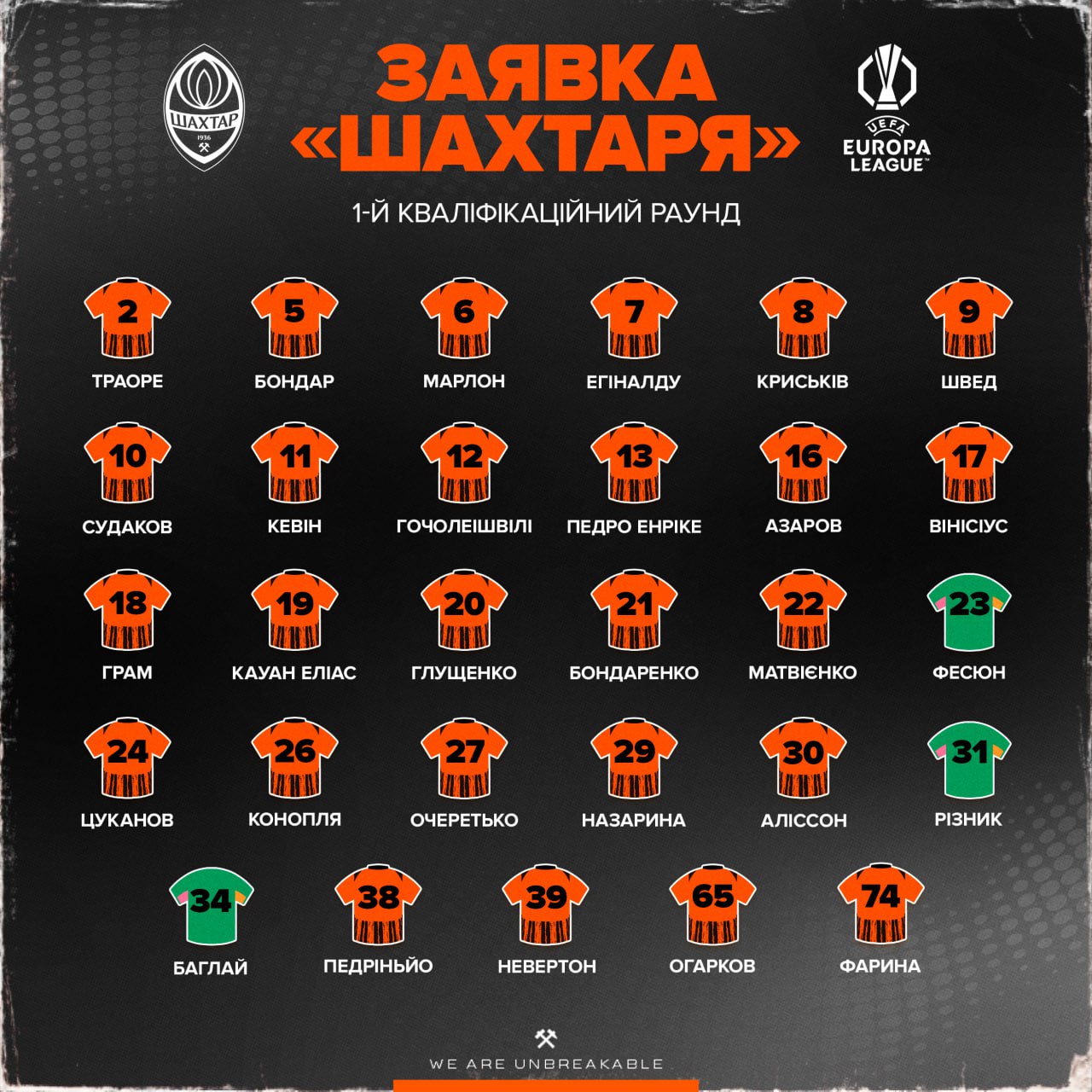 Стартовий склад "Шахтаря": Різник, Еліас, Бондаренко, Судаков, Кевін, Марлон, Аліссон, Матвієнко, Бондар, Педро Енріке, Конопля.
