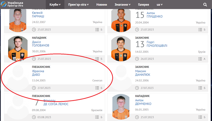 Дабо заявлений "гірниками" за списком Б, який дозволяє реєструвати молодих футболістів, народжених у 2002 році чи пізніше.