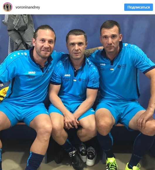 Екс-футболісти Андрій Шевченко, Сергій Ребров і Андрій Воронін зіграв за одну команду на турнірі ветеранів. Воронін опублікував у своєму профілі в мережі Instagram фото з колишніми партнерами по збірній України.
