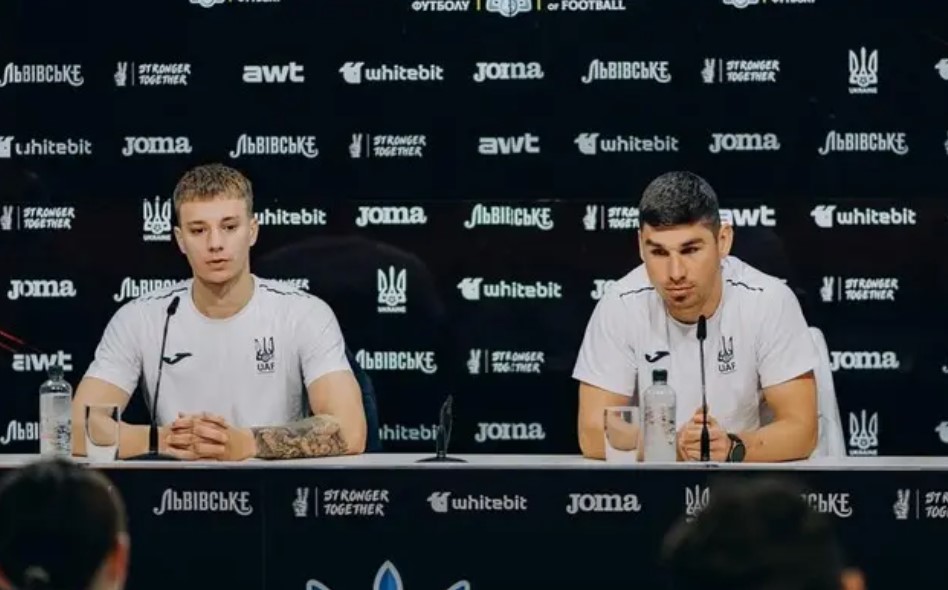 Півзахисники збірної України Володимир Бражко та Руслан Маліновський поспілкувалися з журналістами перед матчем.