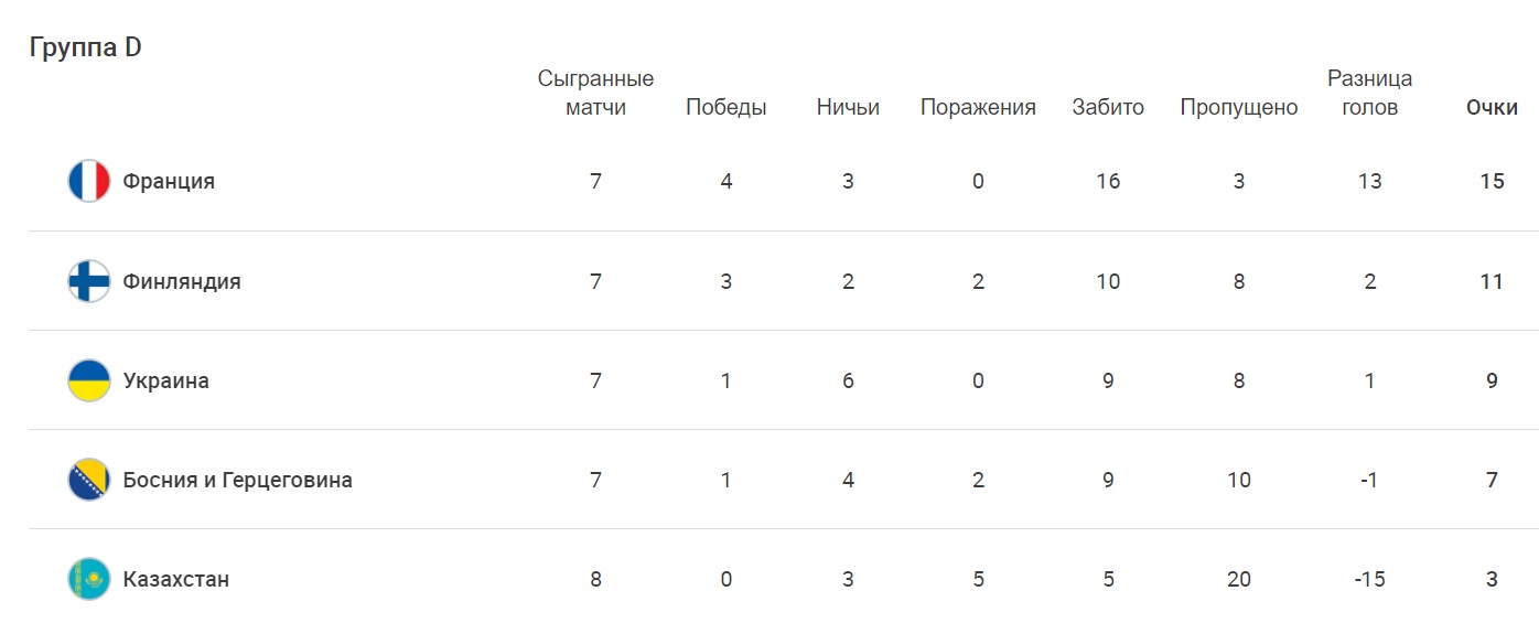 У заключному турі 16 листопада Фінляндія вдома прийматиме невмотивовану Францію, а Україна зіграє на виїзді проти також невмотивованої Боснії та Герцеговини.