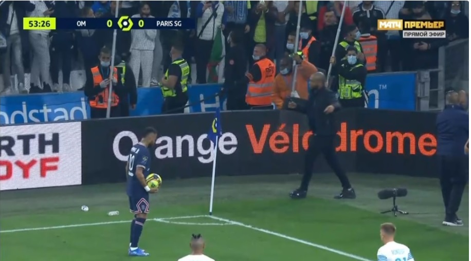 Як тільки Неймар опинявся біля краю поля і подавав кутовий, фани "Марселя" починали його закидати. Закінчилося все тим, що кожен кутовий супроводжувався групою стюардів зі щитами.