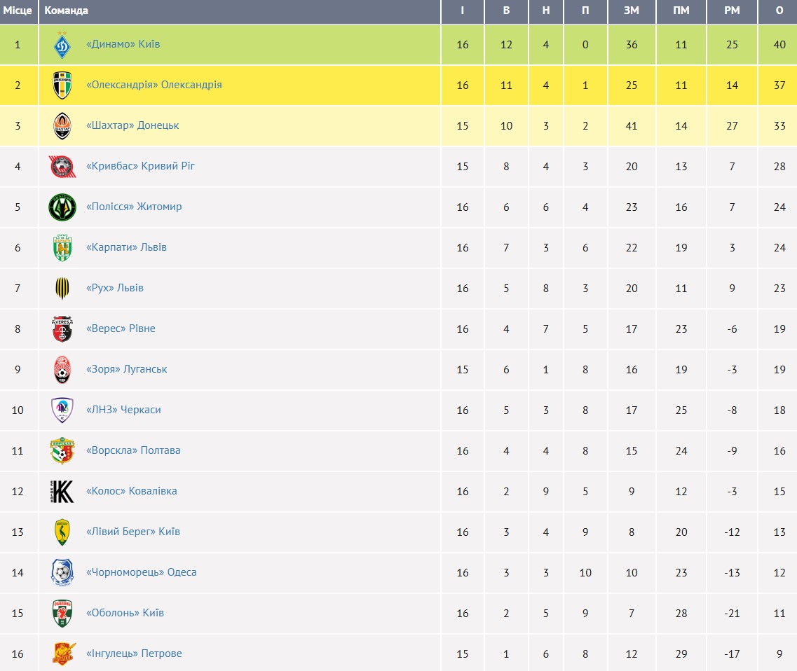 З 5 по 9 грудня відбулися матчі 16-го туру елітного дивізіону чемпіонату України з футболу.