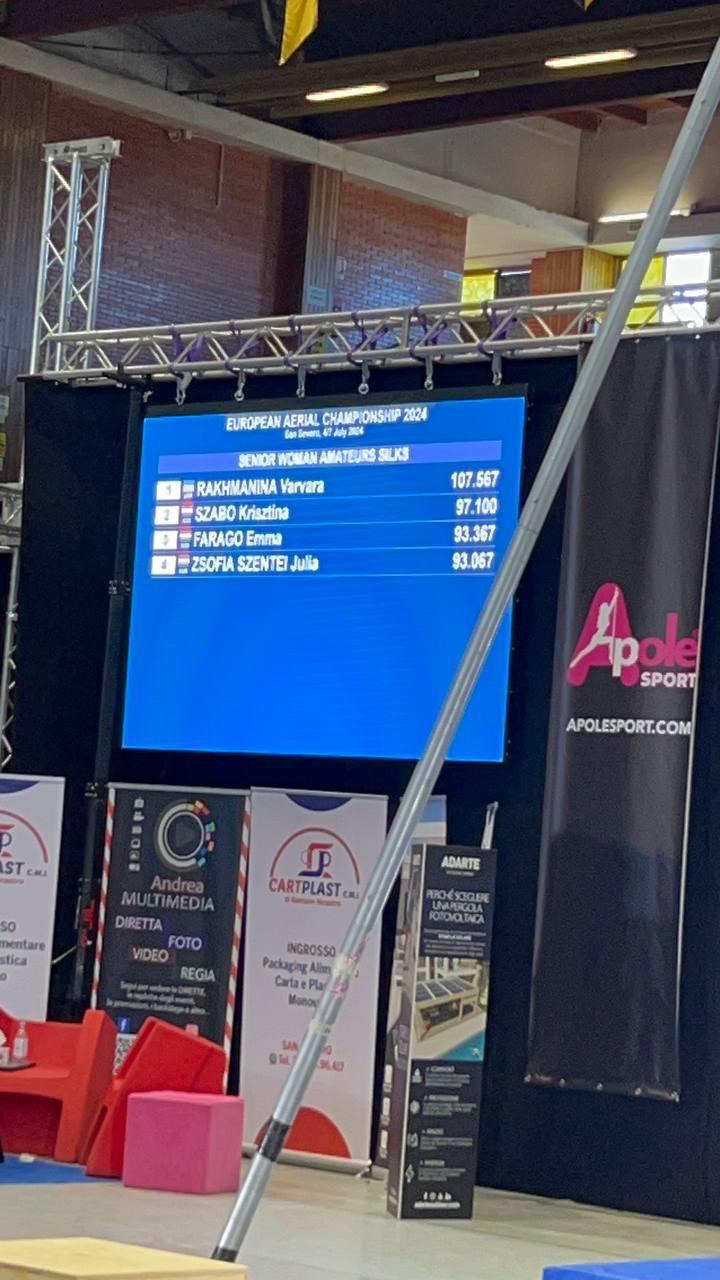 Варавара під час виступу бездоганно виконала вправи на "полотнах", не залишивши жодних шансів опоненткам, яким під час нагородження на п'єдесталі довелося почути національний гімн України.