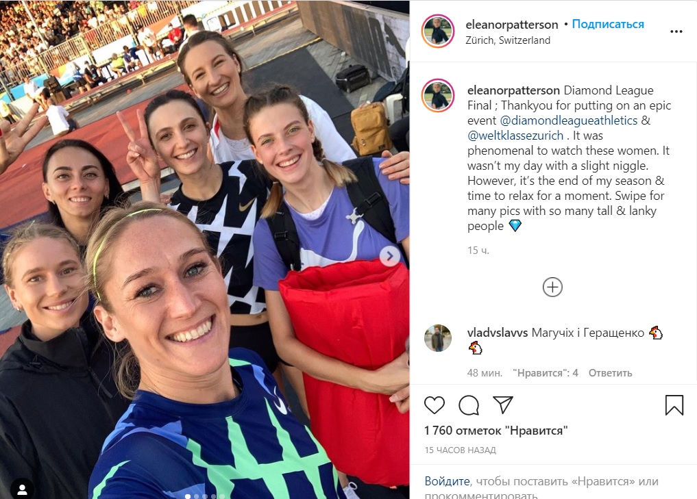 Шість фіналісток Діамантової ліги в стрибках у висоту, включаючи українку Ярославу Магучіх і росіянку Марину Ласіцкене, зробили групове фото після змагань в Цюріху.