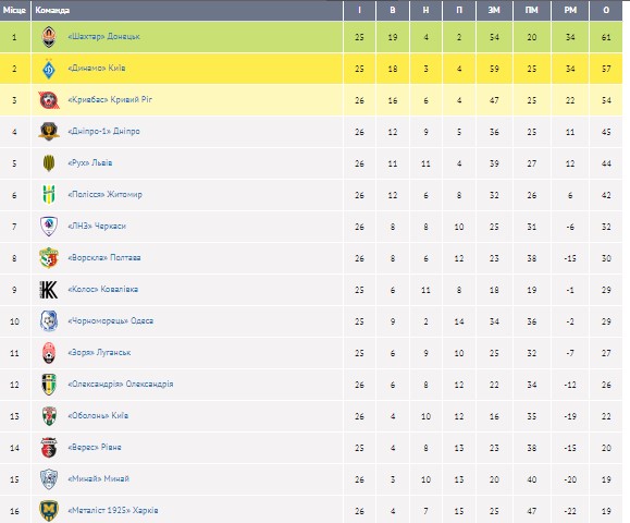 З 27 по 29 квітня відбулися матчі 26-го туру української Прем'єр-ліги.