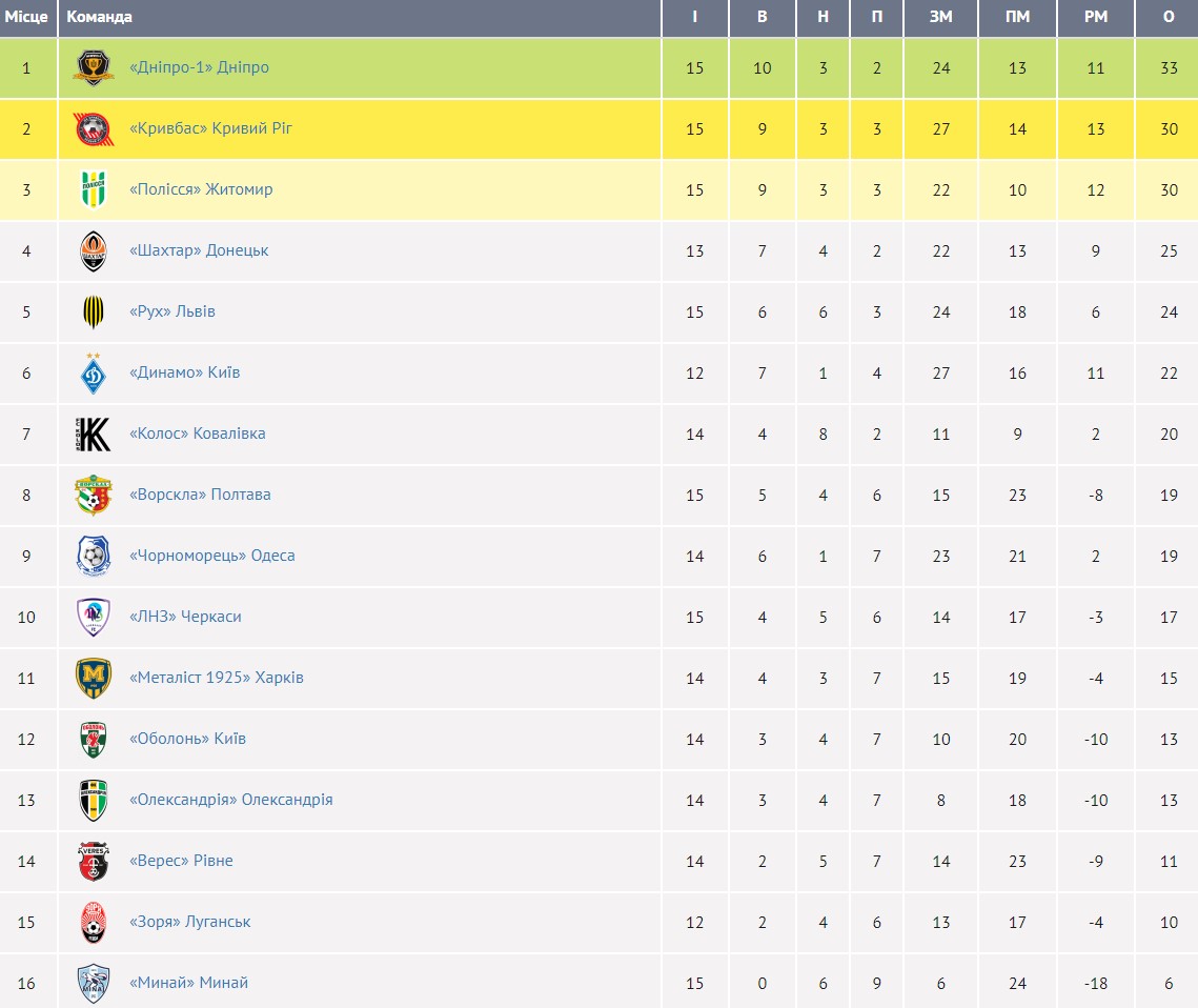 З 24 по 27 листопада проходили матчі 15-го туру чемпіонату України з футболу.