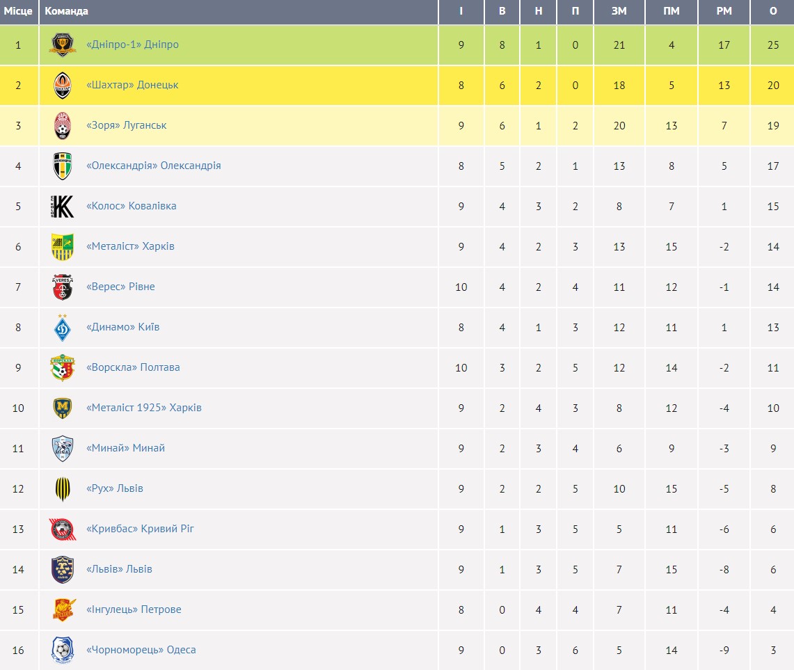 Турнірна таблиця
