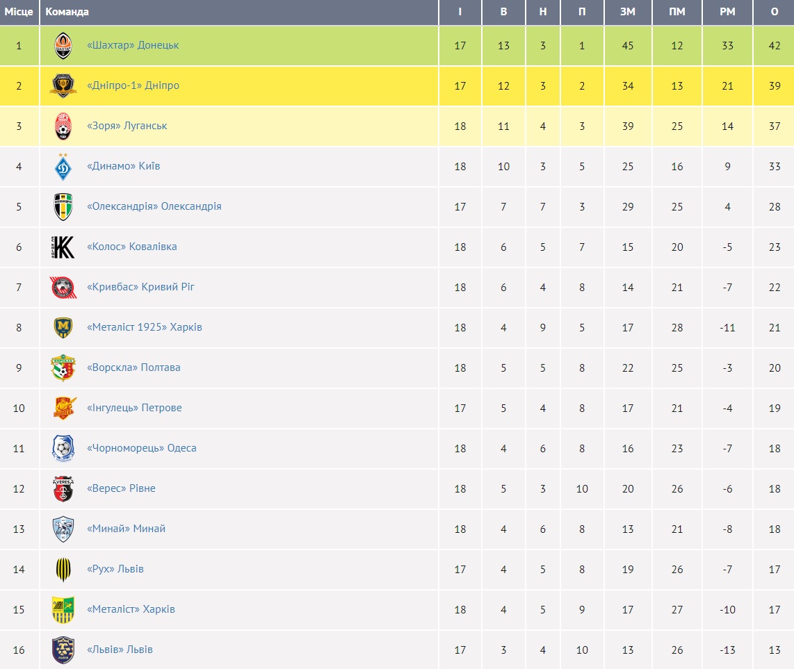 Українська Прем'єр-ліга: результати всіх матчів 17 туру, відео голів, таблиця.