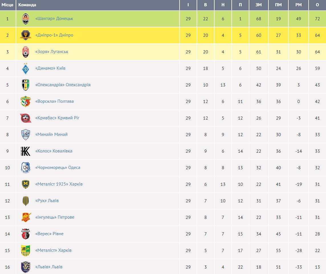 Турнірна таблиця