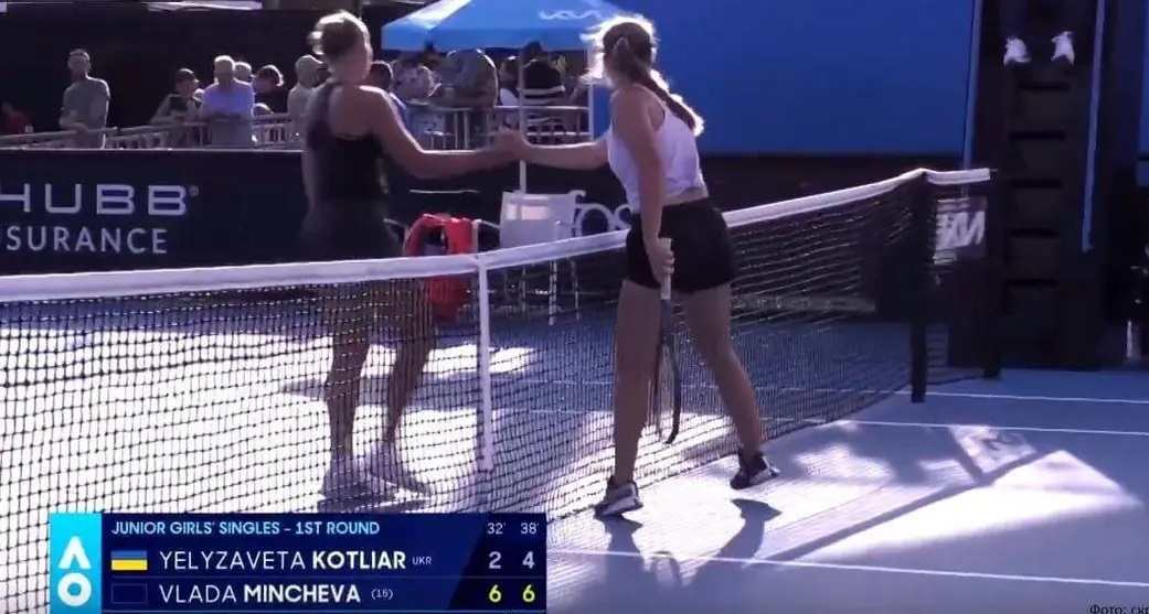 Українська тенісистка Єлизавета Котляр обмінялася рукостисканнями з росіянкою Владою Мінчевою після матчу першого кола юнацького Australian Open-2024.