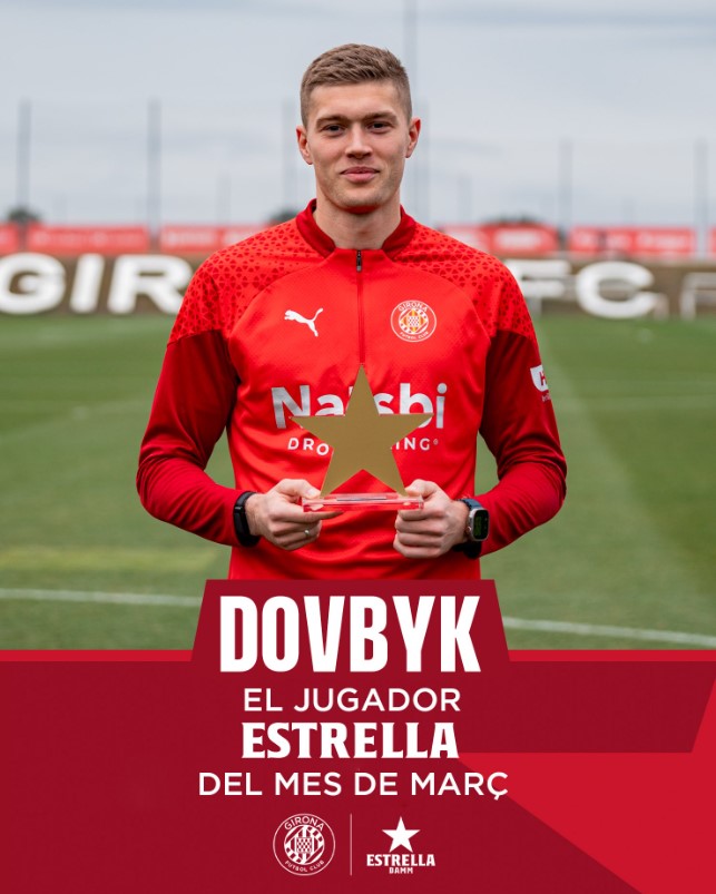 Футболіст збірної України Артем Довбик отримав нагороду найкращому футболісту березня у складі "Жирони".