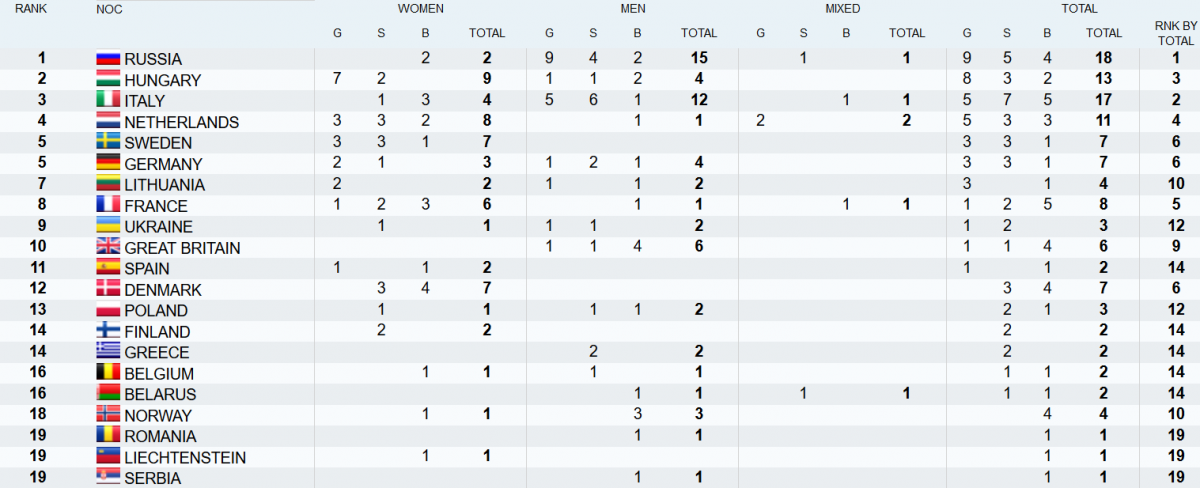 Таким чином, Україна завершила чемпіонат Європи на дев'ятому місці в загальному медальному заліку.