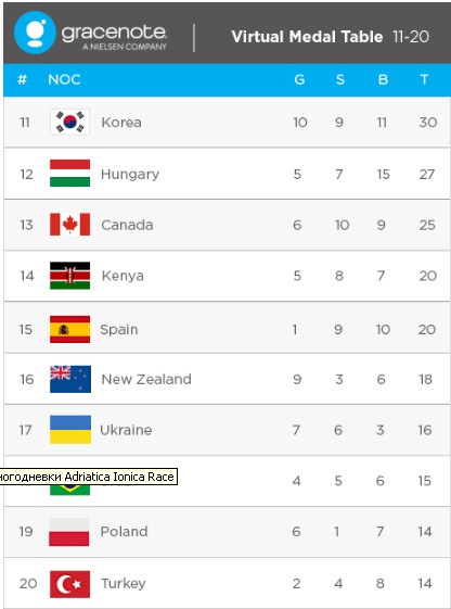 За версією Gracenote українці виграють сім золотих, шість срібних та три бронзові нагороди.
