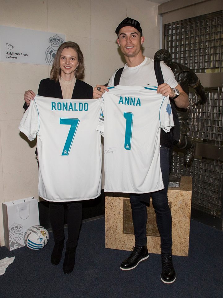 "У минулу суботу я мала приємність відвідати "Сантьяго Бернабеу" і зустрітися з президентом "Реала" Флорентіно Пересом і гравцями клубу. Обмін футболками з Кріштіану Роналду запам'ятується особливо", - написала Музичук в Facebook.