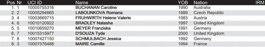 Українка посіла друге місце в MTB Eliminator, поступившись лише француженці Колін Клаузуре. У тройу увійшла австрійка Хелен Фрухвірт.