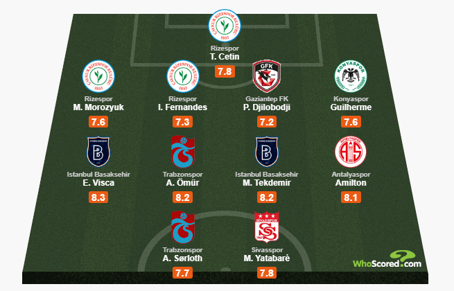 Український захисник "Різеспора" Микола Морозюк потрапив в символічну збірну 27-го туру чемпіонату Туреччини за версією Whoscored.