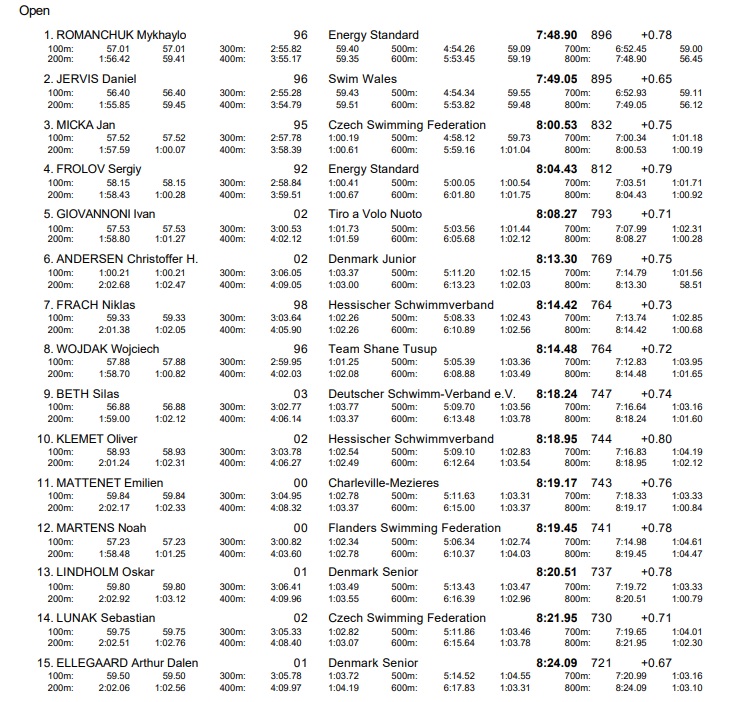 У фінальному запливі Романчуку вдалося на 15 сотих секунди випередити британця Даніеля Джервіса. Третім став Ян Міка з Чехії.