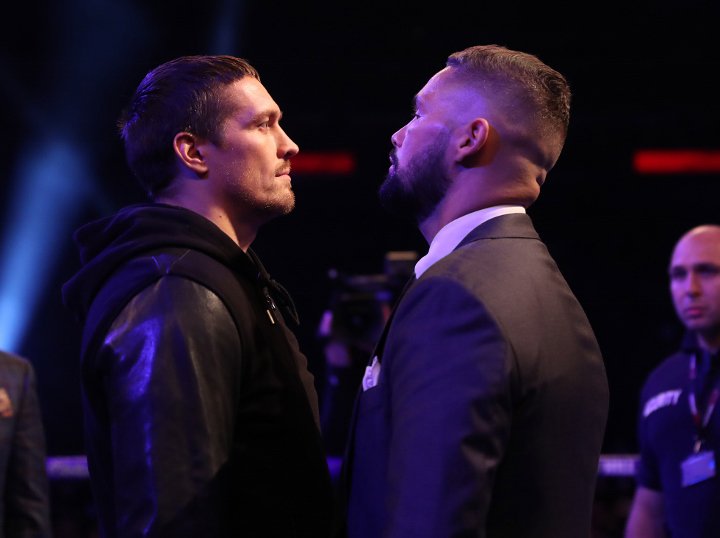 Перед боєм відбулася перша зустріч абсолютного чемпіона світу в першій важкій вазі Олександра Усика з майбутнім суперником з Британії Тоні Беллью.