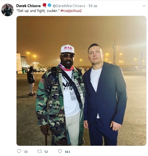 Український суперважкоатлет Олександр Усик (17-0, 13 КО) зустрівся з британцем Дереком Чісорою (32-9, 23 КО) в Саудівській Аравії перед реваншем Ентоні Джошуа та Енді Руїса.