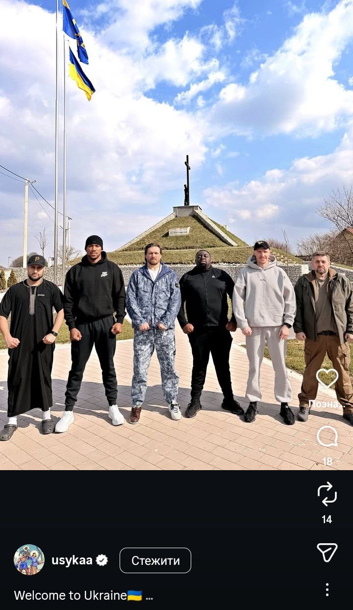 "Їду до Києва з Ентоні Джошуа. Вже планую невелику екскурсію містом. З нетерпінням чекаю можливості показати деякі з моїх улюблених місць!", — повідомив Усик на своїй сторінці в соціальних мережах.