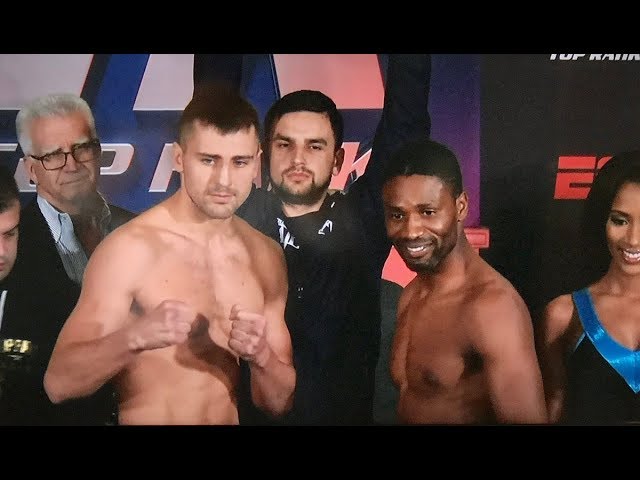 При ліміті напівважкої ваги 79,4 кг українець важить 79,2 кг, француз - 79,1 кг. Гвоздик проведе добровільний захист титулу проти Нгумбу 30 березня.
