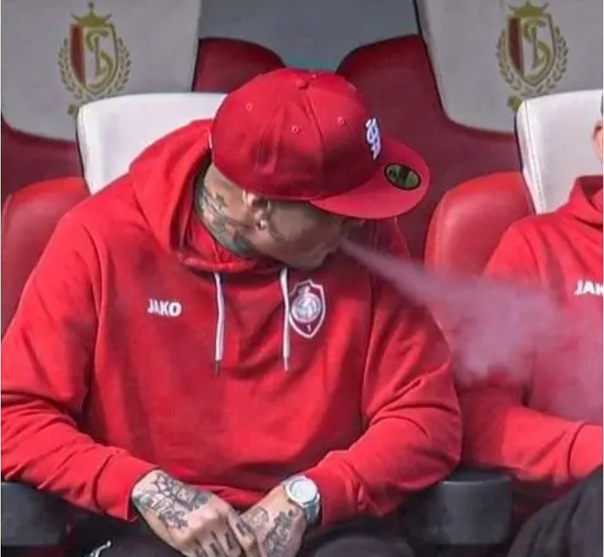 Відомий футболіст бельгійського "Антверпена" Раджа Наінгголан закурив електронну цигарку на лаві запасних під час матчу національної першості проти "Стандарту".