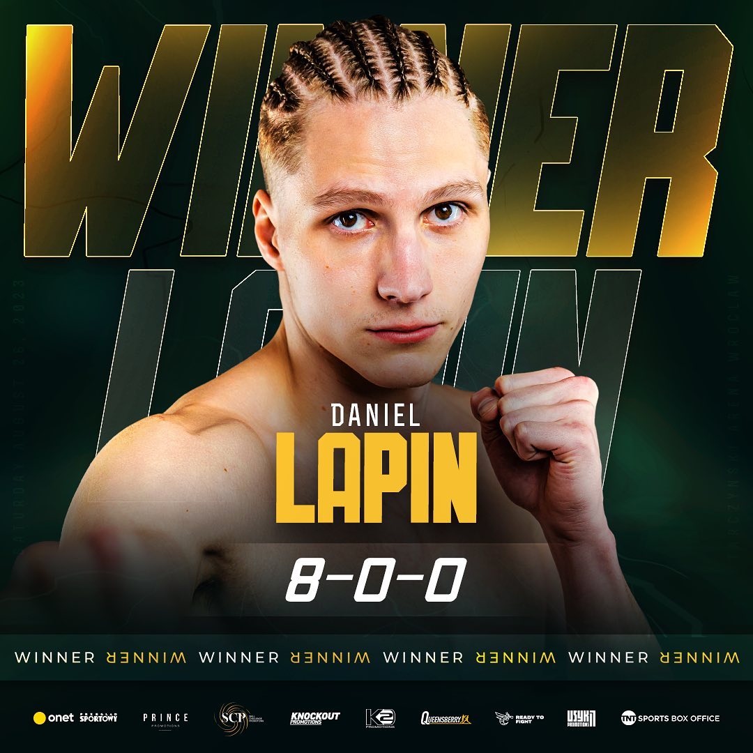 Український боксер напівсередньої ваги Даніель Лапін (8-0, 2 КО) здобув перемогу над німцем Аро Шварцем (20-7-1, 13 КО).