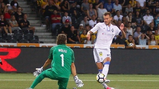 У першому матчі підопічні Хацкевича впевнено перемогли з рахунком 3:1, проте гол на виїзді залишав швейцарцям певні шанси на підсумковий успіх. Поєдинок проходив на штучному газоні стадіону "Стад де Суїсс", на якому, як і очікувалося, киянам було складно показувати свою звичну гру.