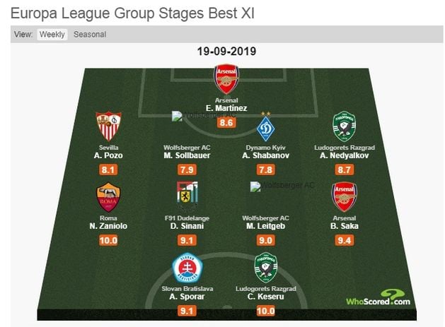 Також у збірну туру потрапили: Мартінес ("Арсенал"), Поцо ("Севілья"), Солльбауер ("Вольфсбергер"), Недялков ("Лудогорець") Дзаньоло ("Рома"), Сінані ("Дюделанж"), Ляйтгеб ("Вольфсберг"), Сака ("Арсенал"), Спорар ("Слован") і Кешер ("Лудогорець").
