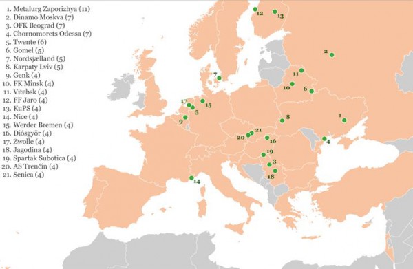 При цьому очолив рейтинг, складений після власного дослідження сайтом Football-observatory.com, запорізький "Металург". У цьому сезоні у складі аутсайдера Прем'єр-ліги дебютувало відразу 11 власних вихованців.
