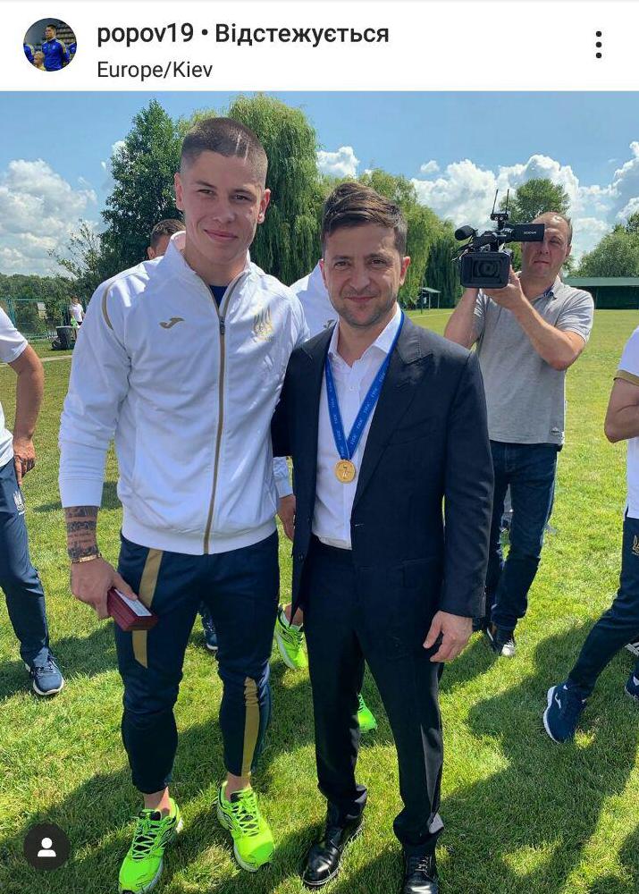Футболісти Денис Попов і Данило Сікан виклали в Instagram спільні фото з главою держави.