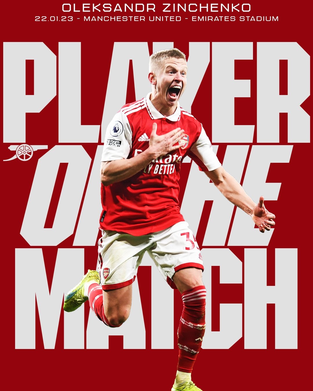 Футболіста збірної України Олександра Зінченка визнано найкращим футболістом лондонського "Арсеналу" у матчі 21-го туру АПЛ проти "Манчестер Юнайтед".
